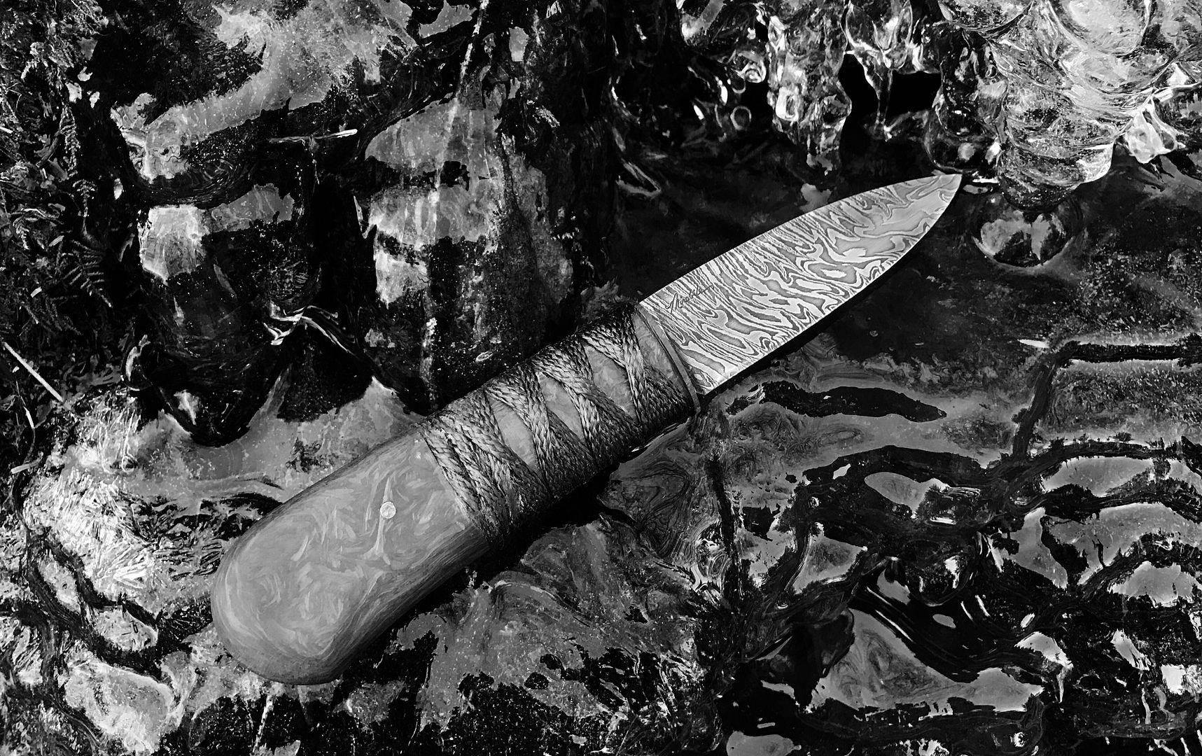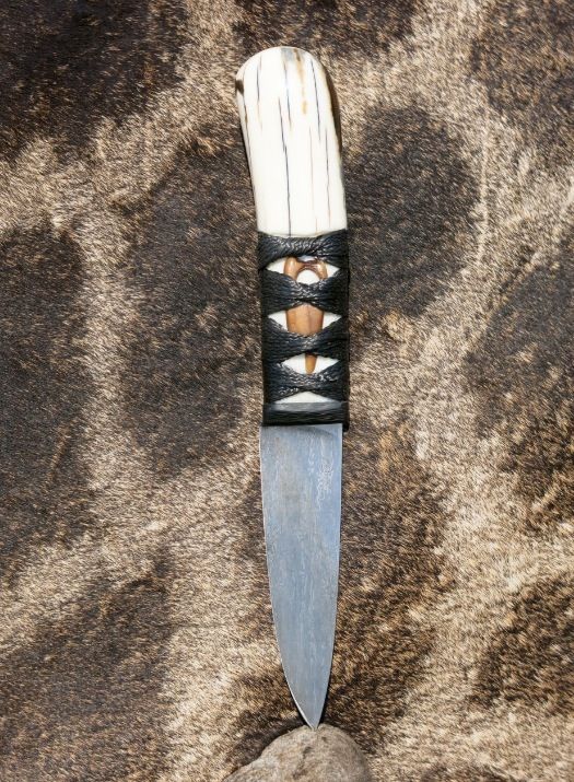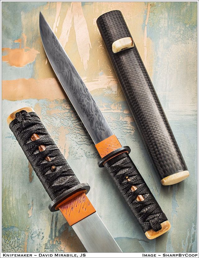 As mentioned he combines things like ancient artifacts and fossil ivories with carbon fiber and titanium. His blade are hand forged and run the gambit of Damascus to San Mai Laminates