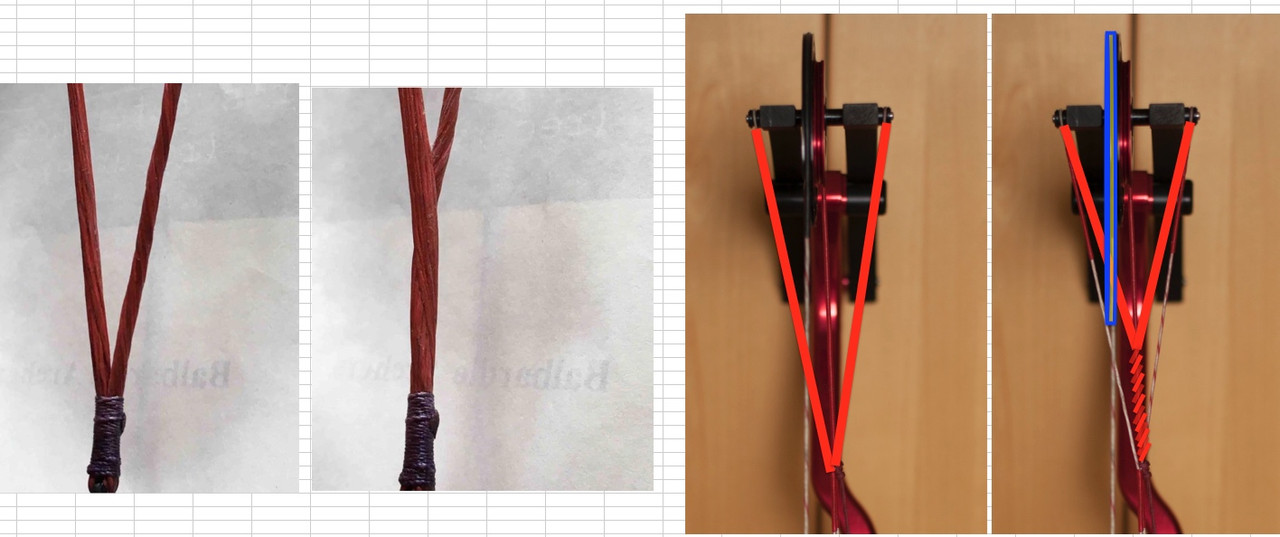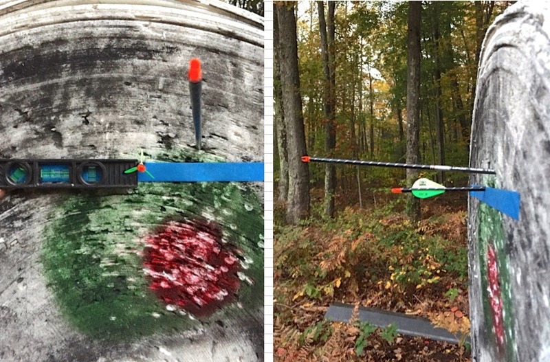 One fletched and One bareshaft arrow. So, ignore the ANGLE, cuz you might be using a bag target. FOCUS more on the height of the impact for the two arrows. If the HEIGHT of impact is different, then, you have to tweak the half twists in ONE cable. Pick ONE cable, and you figure out if you need to add or remove a half twist. Yes, a half twist will make a difference you can see at 20 yards. Do enough half twists, in the correct direction, and you get this result.